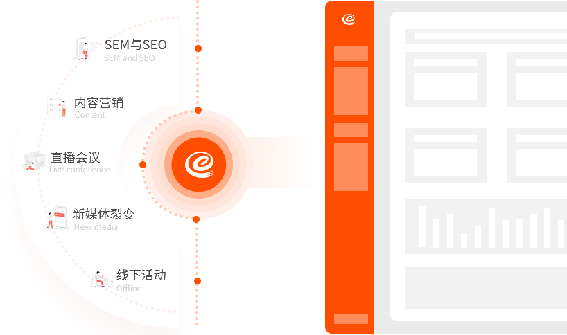 集成搜索引擎SEM、SEO、內(nèi)容營(yíng)銷(xiāo)、直播、新媒體裂變、線(xiàn)下活動(dòng)等營(yíng)銷(xiāo)工具,助力企業(yè)大數(shù)據(jù)獲客;